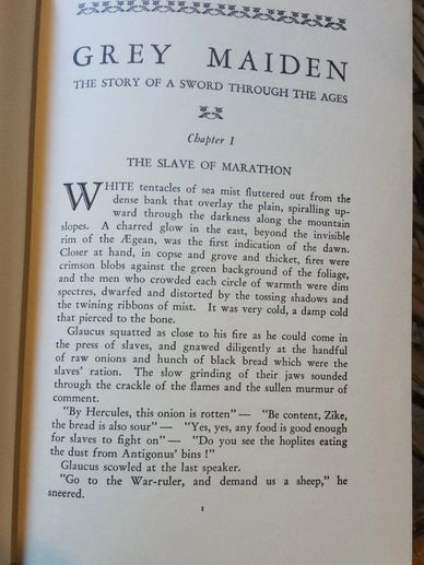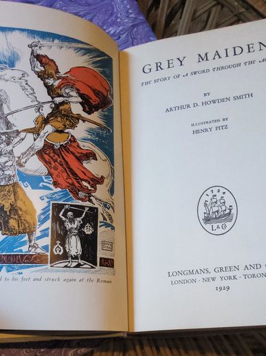 The Story of a Sword Through the Ages. A rousing good read. " This is the story of the sword, Grey Maiden, and a few of the mighty deeds wrought with it in the passage of the centuries." Lovely typography and design, well-illustrated by Henry Pitz and in fine condition, striking endpapers.