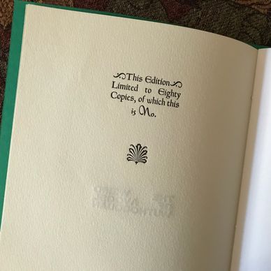 Printed on pale blue heavy French Canson paper using Dutch reflex blue ink. Letterpress printed with vintage Goudy typefaces. Limited to 61 numbered copies.