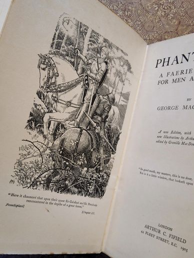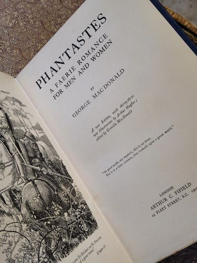 Phantastes: A Faerie Romance for Men and Women. By George MacDonald. A new Edition with thirty-three new Illustrations by Arthur Hughes; edited by Greville MacDonald. (London, Arthur C. Fifield, 1905). A near fine, lovely copy of this surreal Faery Romance Fantasy novel. Gilt top edge, sharp and crisp binding. “If the magic of the storyteller is strong enough, his scenes and characters will grow into our real life.” Roger Lancely Green.