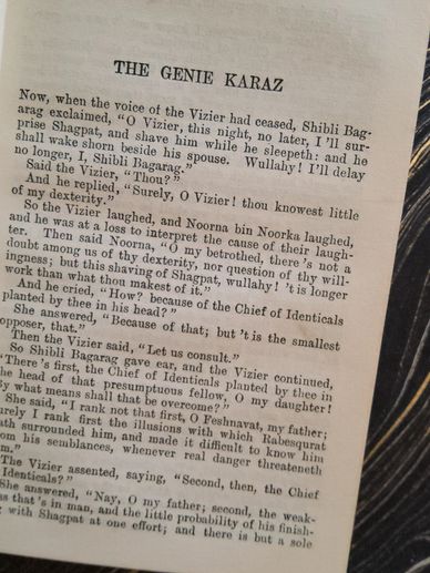 A very nice copy of this Arabian Fantasy published in London, 1913. Light wear, gilt top edge. "Jewels of sly humor gleam through the iridescent prose of this Oriental classic..." From Lin Carter's introduction of the Adult Fantasy edition.