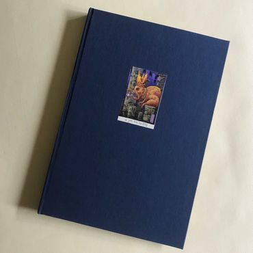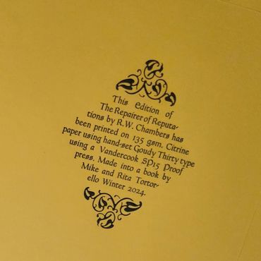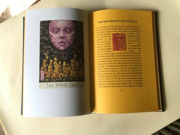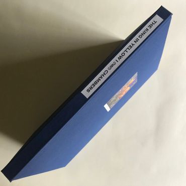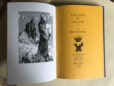 This book will be hand-bound in a dark blue cloth with front pastedown of The King in Yellow by Michael Hutter.