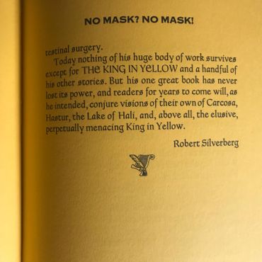 The King in Yellow is considered by many to be the greatest single book of weird fantasy written between the death of Poe and the rise of Lovecraft.